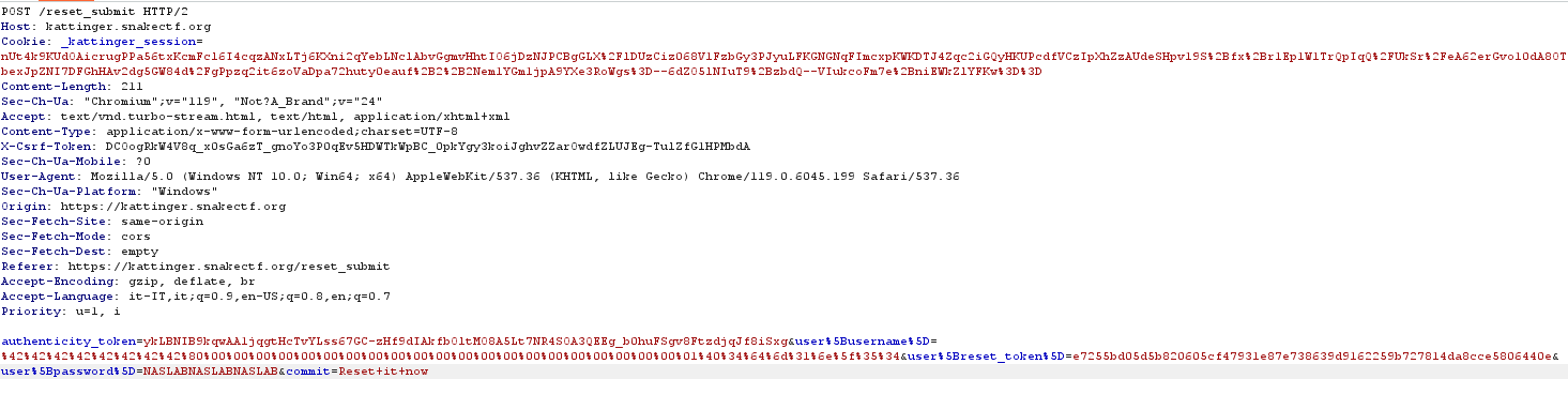 After submitting the password reset request, we are redirected to /reset_token. As depicted in Figure 9, this page allows us to reset the password, but requires the reset token. The first legit question is: how do we get the token? We know that the token is displayed on the user’s profile page, but what if we have forgotten the password?