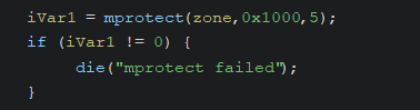 0xdead000are changed toPROT_EXEC | PROT_READ(5) using mprotect.
